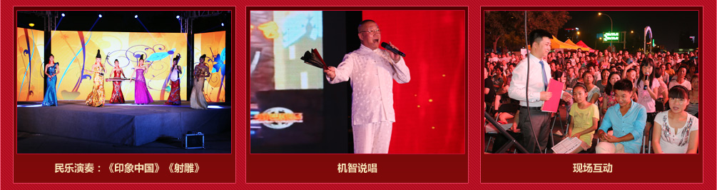 7月19日晚19:30分,由廊坊市文化廣電新聞出版局、廊坊市工商業(yè)聯(lián)合會(huì)主辦的2014“歡樂城鄉(xiāng) 文化惠民”民企之聲文藝晚會(huì)在新華路京客隆廣場(chǎng)盛大開幕。7月19日至9月21日期間每周六、日晚,主辦單位均選擇一家較有實(shí)力的民營(yíng)企業(yè)承辦活動(dòng),以各承辦單位自編自演的節(jié)目為主,通過歌曲、舞蹈、相聲、小品等演藝形式展示企業(yè)風(fēng)采。
