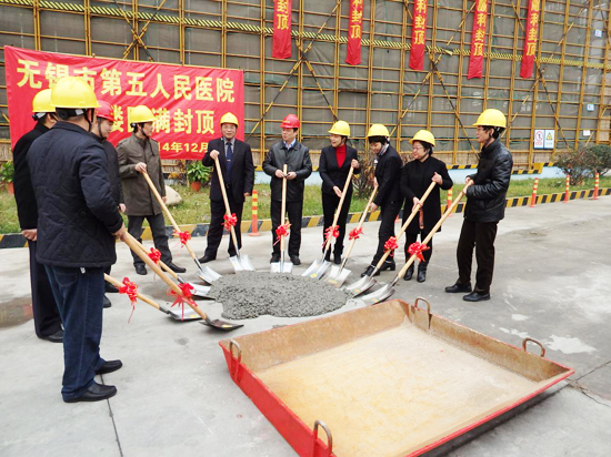 12月11日上午10時(shí)18分,無錫市第五人民醫(yī)院項(xiàng)目現(xiàn)場鞭炮齊鳴、掌聲雷動(dòng),在市第五人民醫(yī)院、市城市投資發(fā)展有限公司等單位代表的共同見證下,第五人民醫(yī)院門診綜合樓項(xiàng)目頂層最后一方混凝土澆筑完成,項(xiàng)目主體結(jié)構(gòu)順利封頂。