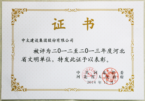 近日,中共河北省委、河北省人民政府公布“2012--2013年度河北省文明單位”評(píng)選結(jié)果,中太建設(shè)集團(tuán)憑借良好的社會(huì)形象再斬殊榮,這也是集團(tuán)公司連續(xù)8年獲此榮譽(yù)。