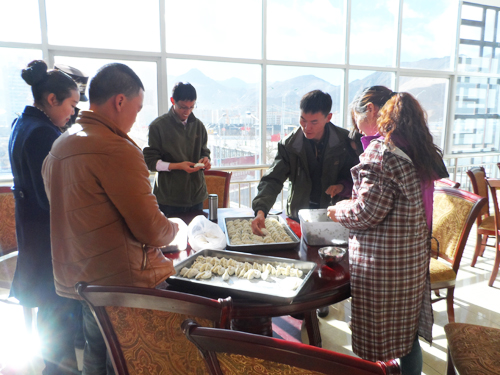 “我為大家包餃子”活動(dòng)名稱,正體現(xiàn)了十一局拉薩員工相互關(guān)心、相互照顧的融洽工作氛圍。員工輪流到食堂為大家包餃子,場(chǎng)面異常熱烈,其樂融融。等待熱騰騰餃子出爐的時(shí)間里,所有員工圍在大蛋糕前,為12月份過生日的同事送上祝福并獻(xiàn)唱生日歌。