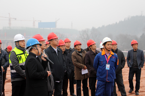 1月14日上午,四川簡(jiǎn)陽市委書記王宏斌來到中太建設(shè)集團(tuán)承建的唯品會(huì)(中國(guó))西部總部基地項(xiàng)目現(xiàn)場(chǎng),實(shí)地觀看了施工作業(yè)情況,并組織召開座談會(huì),對(duì)一期工程施工進(jìn)度及質(zhì)量給予高度肯定。簡(jiǎn)陽市長(zhǎng)趙春淦、市委副書記王德彰、副市長(zhǎng)陳建龍及市政府、市人大、市政協(xié)及政府相關(guān)職能部門三十余人陪同視察。