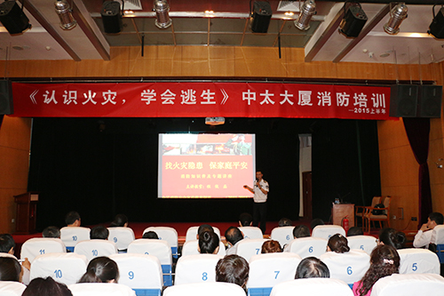 5月15日上午,中太大廈2015年上半年消防培訓(xùn)在二樓報(bào)告廳舉行,邀請石家莊市冀消安防火教育中心宣教處教員程俊磊老師,為大家?guī)砹艘粓鲆浴罢一馂?zāi)隱患保家庭安全”為主題的消防知識普及專題講座。