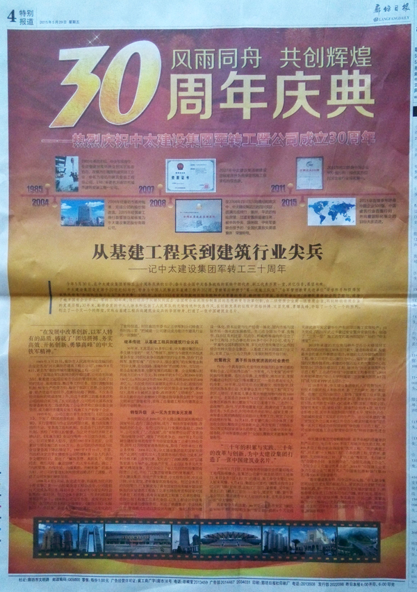 “三十年的積累與實踐,三十年的改革與創(chuàng)新,為中太建設(shè)集團(tuán)打造了一張中國建筑業(yè)名片。”