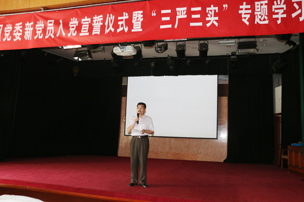 講座開始前,集團(tuán)黨委副書記鐘崇鶴同志就本次黨員學(xué)習(xí)教育專題講座的意義進(jìn)行了闡述,并代表集團(tuán)黨委對(duì)新黨員提出了希望,就黨員管理人員如何“踐行‘三嚴(yán)三實(shí)’、打造高效團(tuán)隊(duì)”提出了要求。鐘崇鶴同志指出,新黨員是各級(jí)黨組織的新鮮血液,也是在黨的事業(yè)和中太各項(xiàng)工作中涌現(xiàn)出來的優(yōu)秀分子。在此,我代表集團(tuán)黨委向新黨員同志們提出五點(diǎn)希望和要求:一是希望新黨員要不斷增強(qiáng)入黨的光榮感和責(zé)任感,堅(jiān)定對(duì)黨的信念,要把為人民服務(wù)的宗旨牢記在心;二是要始終以黨員的標(biāo)準(zhǔn)規(guī)范嚴(yán)格要求自己,不但在組織上入黨,還要在思想上入黨,使自己真正成為合格的共產(chǎn)黨員;三是在工作崗位中,以身作則,率先垂范,起先鋒模范作用,具有高尚的職業(yè)道德,忠于職守,正確履行自己的崗位職責(zé);四是要不斷學(xué)習(xí),提升自己的履職能力和素質(zhì),只有不斷加強(qiáng)政治理論和業(yè)務(wù)知識(shí)的學(xué)習(xí),才能具有較高的政治理論素質(zhì)、堅(jiān)定正確的政治方向;五是嚴(yán)格要求自己,不斷提高自己保護(hù)和防范能力,從自我做起,從小事做起,在今后工作中,嚴(yán)守黨的紀(jì)律,更好的發(fā)揮黨員先鋒模范作用。