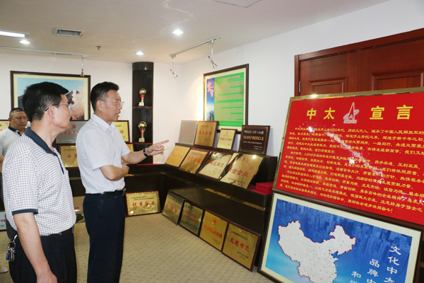 7月23日下午,由省工商聯(lián)副主席常衛(wèi)華帶隊(duì)的督導(dǎo)組,在廊坊市委統(tǒng)戰(zhàn)部副部長、工商聯(lián)黨組書記劉玫等領(lǐng)導(dǎo)的陪同下,來到中太建設(shè)集團(tuán)調(diào)研以守法誠信為重點(diǎn)內(nèi)容的深入開展理想信念教育實(shí)踐活動(dòng)情況,聽取了集團(tuán)公司黨委副書記、工會(huì)主席鐘崇鶴關(guān)于集團(tuán)公司開展以誠信守法為為重點(diǎn)內(nèi)容的理想信念教育實(shí)踐活動(dòng)情況的匯報(bào),觀看了活動(dòng)宣傳展板、并參觀了集團(tuán)公司二樓陳列室和十五樓榮譽(yù)室。
