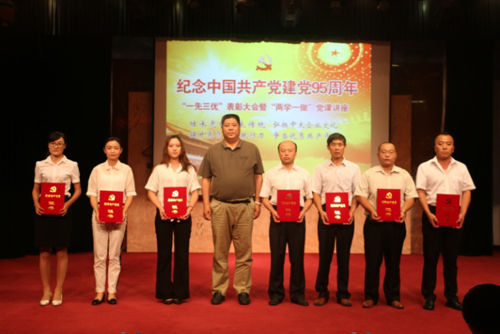 7月1日是中國共產(chǎn)黨建黨95周年紀念日,集團黨委在中太大廈二樓報告廳召開了“一先三優(yōu)”表彰大會暨“兩學(xué)一做”黨課講座。在家的集團黨委班子成員和行政班子成員,總部、建設(shè)集團、開發(fā)集團機關(guān)全體黨員、員工,在廊所屬各單位支部班子成員和受集團黨委表彰的“一先三優(yōu)”人員、入黨積極分子等單位管理人員共180多人,參加了表彰大會和黨課講座。