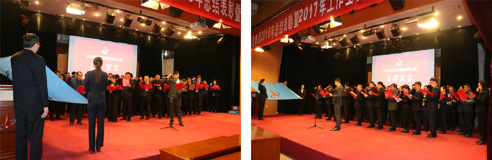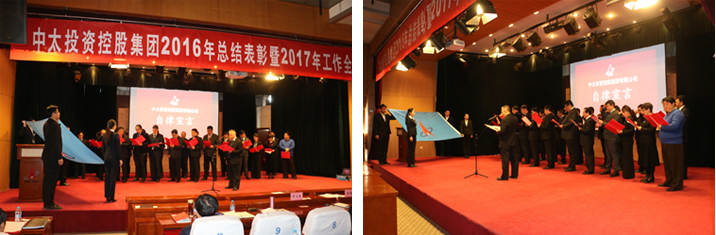 根據(jù)會(huì)議安排,中太建設(shè)集團(tuán)副董事長燕振義、總裁吳建國作為領(lǐng)誓人,分別引領(lǐng)中太投資控股集團(tuán)下屬單位董事、監(jiān)事及中層以上領(lǐng)導(dǎo)干部進(jìn)行自律宣誓,宣誓人分別在誓詞上簽字,并承諾2017年將恪盡職守、奮發(fā)向上,全身心投入到企業(yè)發(fā)展上來,做合格的企業(yè)引領(lǐng)人和決策者。