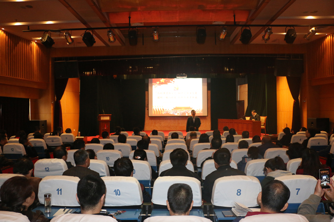 10月21日上午,以“與時(shí)俱進(jìn)跟黨走 腳踏實(shí)地謀發(fā)展 團(tuán)結(jié)一致向前看 創(chuàng)新發(fā)展譜新篇”為主題的中太建設(shè)集團(tuán)“黨的十九大《報(bào)告》學(xué)習(xí)講座”在中太大廈二樓報(bào)告廳舉行,中太廊坊總部各集團(tuán)板塊的機(jī)關(guān)黨員和所屬各單位部分黨員管理人員、入黨積極分子等共200多人參加講座,集團(tuán)黨委副書記鐘崇鶴同志主持學(xué)習(xí)講座。