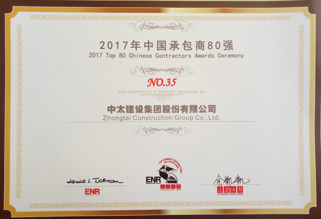 2017ENR/建筑時報“中國承包商80強和工程設計企業(yè)60強”榜單日前揭曉,中太建設集團成功入圍“2017年中國承包商80強”榜單,排名第35名,這是中太建設集團第8次入圍該榜單。