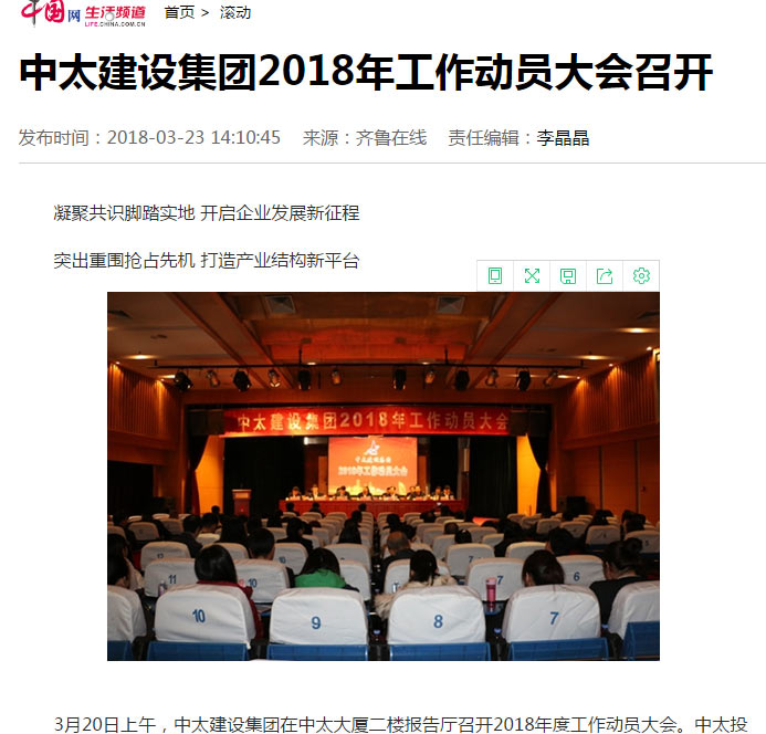 中國網(wǎng)報道了“中太建設集團2018年工作動員大會召開”