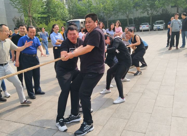 本次趣味運(yùn)動(dòng)會(huì)分為團(tuán)體賽和個(gè)人賽。團(tuán)體賽包含拔河、單足跳接力、風(fēng)采一條龍、坦克大戰(zhàn)和業(yè)績翻番五項(xiàng)比賽;個(gè)人賽包含踢毽子、跳繩、摸石頭過河、青蛙跳水和夾玻璃球五項(xiàng)比賽。參加團(tuán)體賽和個(gè)人賽的選手,均要按順序完成五項(xiàng)比賽,最終累加得分獲得比賽名次。經(jīng)過激烈的角逐,建設(shè)集團(tuán)第三代表隊(duì)榮獲團(tuán)體比賽第一名;建設(shè)集團(tuán)唐磊磊在個(gè)人競技賽中脫穎而出獲得冠軍,建設(shè)集團(tuán)黃雪獲得第二名,房產(chǎn)集團(tuán)張倩倩、建設(shè)集團(tuán)張超并列第三名。