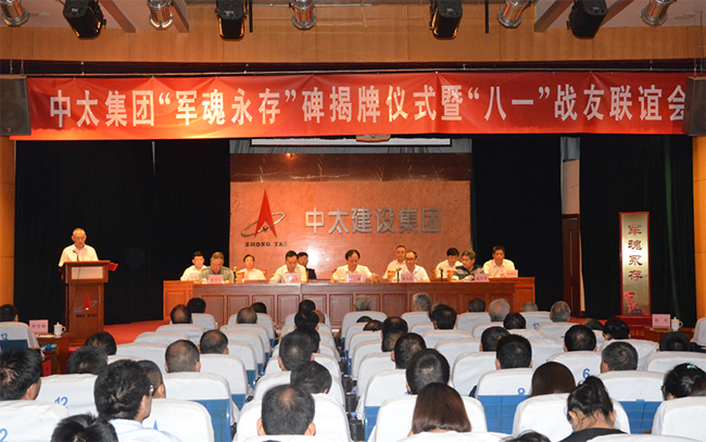 2018年7月26日上午,久違而清脆的集合號在中太大廈二樓報告廳久久回蕩,拉開了中太集團“軍魂永存”碑揭牌儀式暨慶“八一”戰(zhàn)友聯(lián)誼會的序幕。中太集團在廊各單位部分員工、機關各部門的全體員工和軍轉工在崗與退休戰(zhàn)友代表共180多人,著裝整齊,嚴陣以待,期待這一莊嚴時刻的到來。