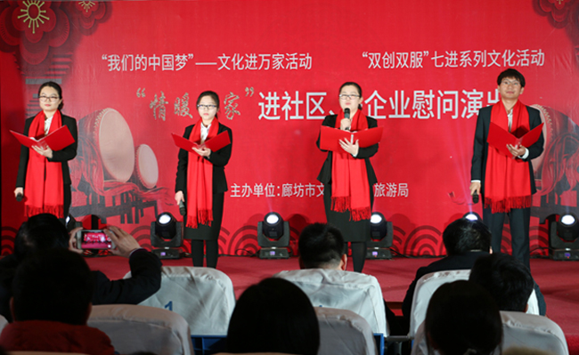2019年2月19日上午,廊坊市伴著瑞雪迎春的兆頭和上元節(jié)張燈結彩的情景。中太大廈二樓多功能廳燈光璀璨,歡聲笑語,廊坊市文化廣電和旅游局組織的“我們的中國夢”文化進萬家系列活動在此舉辦,這也是這支文藝小分隊進企業(yè)、進社區(qū)開展“情暖萬家”慰問演出的第十場演出。市文廣旅局副局長李永生、中太投資控股集團監(jiān)事會主席吉士俊出席活動并分別致辭,中太系統(tǒng)在廊各板塊的部分員工觀看了慰問演出。