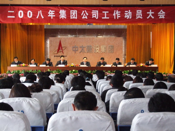 2008年2月22日,中太建設集團隆重召開了2008年工作動員大會。集團公司下屬各單位正、副職領導、支部書記、主任工程師及主要管理人員,總部及各事業(yè)部機關全體人員共241人參加了大會。