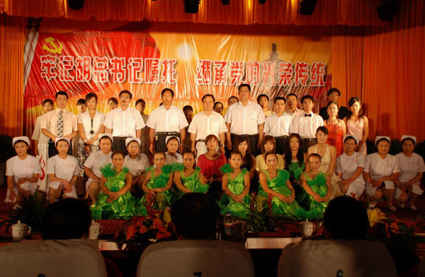 廊坊師范學院喬一風雨同舟組合和中太員工為大會獻上精彩的文藝表演,《情系人民》、《黨旗下中太人》、《繡紅旗》、《我愛你中國》等一個個主題鮮明的節(jié)目,充分展示了同學們及中太員工以飽滿的政治熱情,創(chuàng)作、排演了形式多樣、思想深刻、藝術(shù)精湛的文藝節(jié)目;一首首耳熟能詳?shù)母枨粋個真切感人的節(jié)目,讓在場的每一位觀眾、都感受到同學們對災區(qū)人民的真切關愛之情。歌聲似春潮涌動,掌聲如林濤和鳴,大會在《明天會更好》嘹亮的歌聲中圓滿結(jié)束。集團領導觀看了演出并上臺接見演職人員,同他們合影留念。