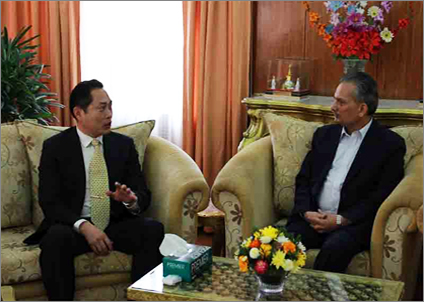 馬功云局長(zhǎng)(左)拜訪尼泊爾總理,介紹中太建設(shè)集團(tuán)發(fā)展情況。