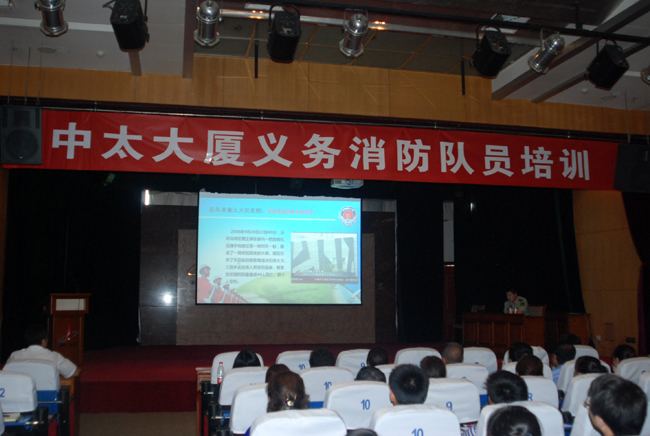此次培訓(xùn)由市消防支隊(duì)遲楊科長(zhǎng)親自授課,大廈共有二十二個(gè)單位近百人參加,中太建設(shè)集團(tuán)領(lǐng)導(dǎo)高度重視大廈的消防工作,總裁張明禮同志親臨現(xiàn)場(chǎng)并致辭。培訓(xùn)過(guò)程中,遲科長(zhǎng)首先從火災(zāi)的視頻案例、如何提高四個(gè)能力建設(shè)、如何對(duì)寫字樓開(kāi)展防火巡查及消防設(shè)施設(shè)備的維護(hù)等方面進(jìn)行了詳細(xì)細(xì)致的講解,緊接著從貼近生活、實(shí)用性強(qiáng)的消防常識(shí)入手,講解了火災(zāi)的預(yù)防、報(bào)警、撲救、滅火器的使用方法、人員疏散及逃生十三決。