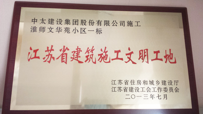 近日,由第三工程局承建的江蘇省淮安市淮師文化苑小區(qū)一標,被江蘇省住房和城鄉(xiāng)建設廳、江蘇省建設工會工作委員會評為二零一三年“江蘇省建筑施工文明工地”。
