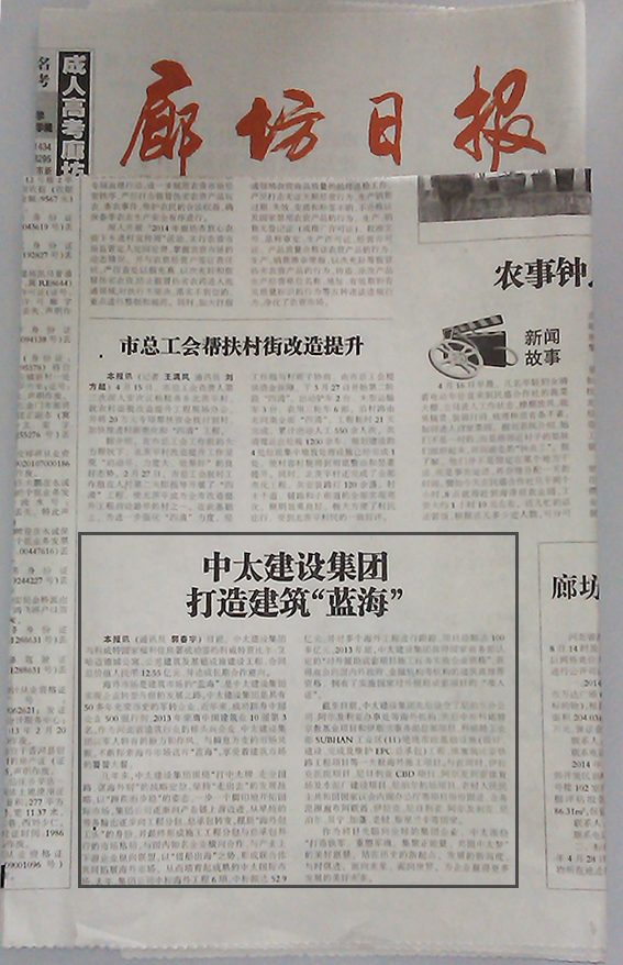 廊坊日?qǐng)?bào)報(bào)道了中太建設(shè)集團(tuán)打造建筑“藍(lán)海”
