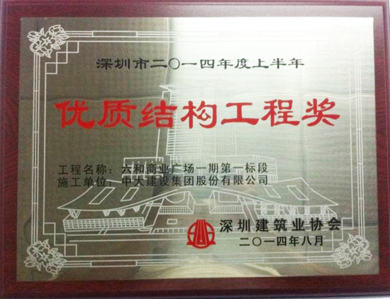 8月28日,深圳建筑業(yè)協(xié)會(huì)發(fā)布“關(guān)于表彰2014年度上半年深圳市優(yōu)質(zhì)結(jié)構(gòu)工程獎(jiǎng)的決定”公告。第二工程局承建的房建項(xiàng)目“六和商業(yè)廣場(chǎng)一期第一標(biāo)段”榮獲深圳市2014年度上半年優(yōu)質(zhì)結(jié)構(gòu)工程獎(jiǎng)。