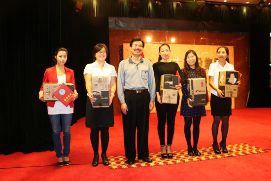 工會(huì)副主席、企業(yè)文化部總經(jīng)理張娟娟與優(yōu)秀獎(jiǎng)獲得者合影