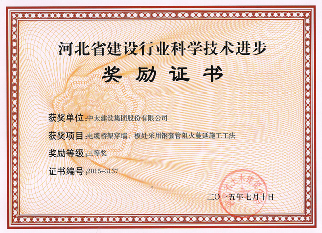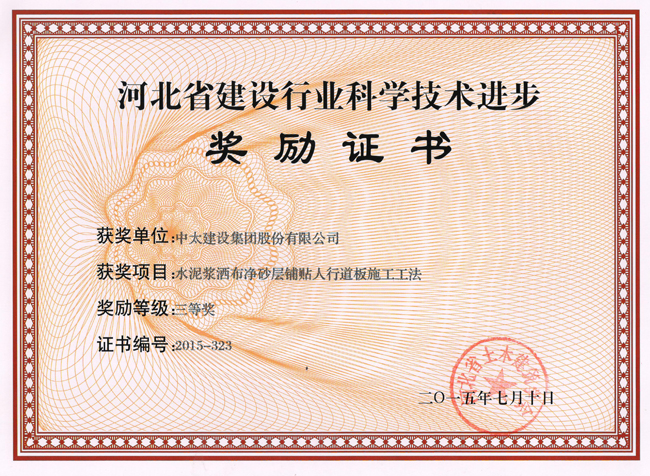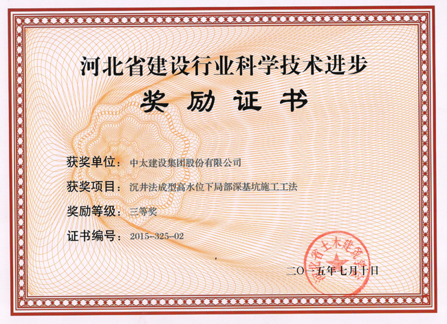 2015年河北省建設(shè)行業(yè)科學(xué)技術(shù)進(jìn)步獎(jiǎng)勵(lì)證書匯總