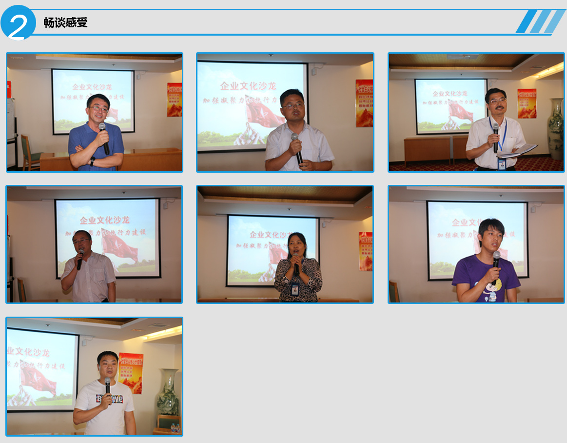 第二部分為領(lǐng)導(dǎo)暢談文化心得。一改傳統(tǒng)會議嚴(yán)肅形式,通過面對面交流拉近企業(yè)領(lǐng)導(dǎo)者和員工間的距離,通過輕松、自由的形式讓向全體員工企業(yè)文化魅力。
